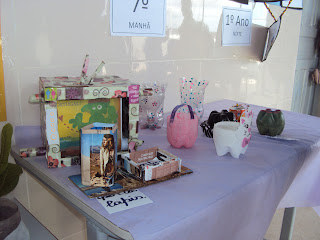 O evento teve a participação efetiva dos alunos na produção de muitos produtos feitos com materiais recicláveis.